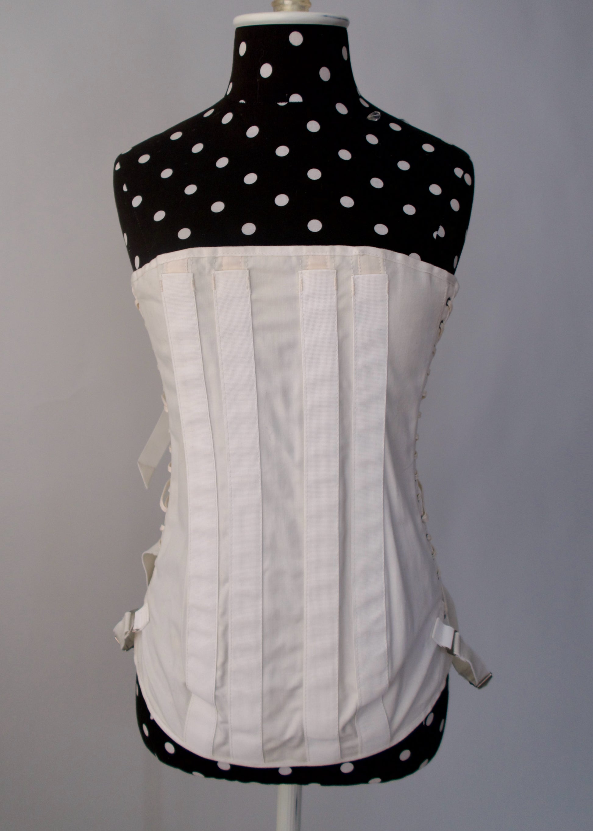Waist: approx 14 inches flat (adjustable with lace up back)